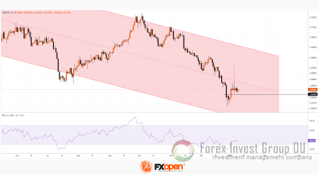Учитывая перечисленные аргументы, можно предположить, что USD сможет укрепиться относительно франка, приостановив темпы нисходящей тенденции 2023 года. Бычий пробой медианной линии (или неспособность цены закрепиться ниже уровня 0.845) дадут больше аргументов в пользу наличия спроса на рассматриваемом рынке.