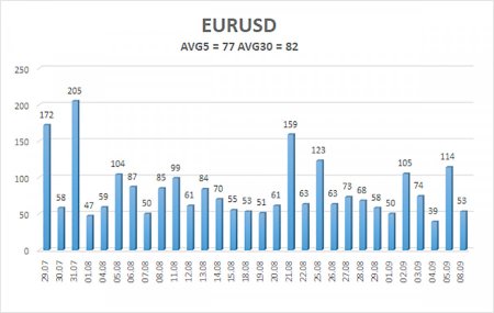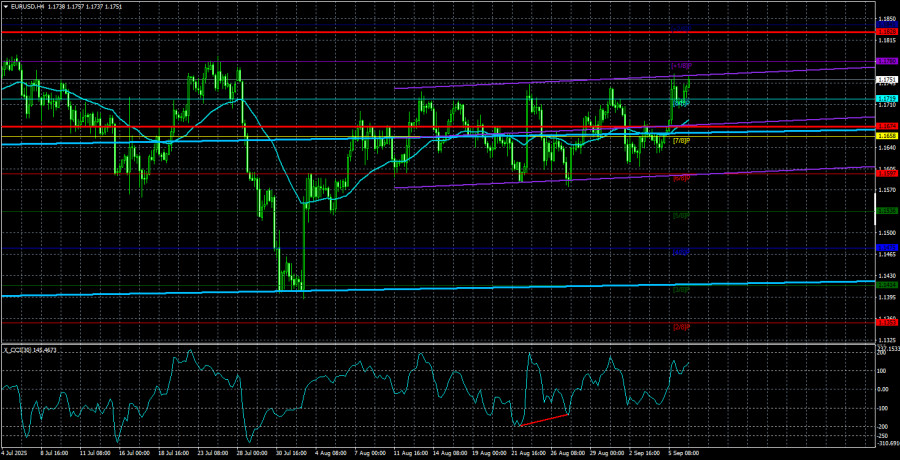 Валютная пара EUR/USD в течение понедельника торговалась достаточно скромно, но это и не удивительно – макроэкономический и фундаментальный фон в ЕС и США практически отсутствовал. Дональд Трамп продолжает делать заявления практически каждый день, но в данное время его комментарии больше касаются урегулирования конфликтов между Украиной и Россией, а также в секторе Газа. Можно сказать, что Трамп немного ослабил свое давление на весь остальной мир, связанное с «несправедливостью в торговле, которая позволяла многим странам десятилетиями грабить США». Казалось бы, лучшего времени, чтобы расти, доллару не найти. В кои-то веки Дональд Трамп не вводит новые тарифы и не повышает старые. Однако, как мы говорили много раз, у американской валюты в принципе нет никаких поводов для радости. Чему радоваться, если экономика продолжает слабеть, несмотря на высокий показатель ВВП во втором квартале? Ведь показатель ВВП – это не единственный показатель состояния экономики. К примеру, прошлая неделя продемонстрировала, что деловая активность в секторе производства продолжает падать, количество открытых вакансий уменьшается, количество создаваемых рабочих мест находится на мизерном значении 4 месяца подряд, а уровень безработицы растет. Можно ли радоваться росту ВВП в таких обстоятельствах? Вот и мы считаем, что нет. Экономика может расти хоть на двухзначные значения. Если при этом безработица растет, инфляция растет, рынок труда сокращается, а ФРС снижает ключевую ставку, доллар будет продолжать падение еще очень долго. А именно к такой картине мы все дружно и приближаемся. В то, что ФедРезерв понизит ключевую ставку в сентябре, не сомневается уже никто. Теперь рынок сомневается в том, что до конца года регулятор понизит ставку лишь 2 раза по 0,25%. Надежды прошлой недели были связаны с отчетом NonFarm Payrolls. Трейдеры допускали, что значение отчета может быть хотя бы немного выше не самого позитивного прогноза, что позволило бы сделать вывод о стабилизации ситуации на рынке труда. Однако этого не произошло. Поэтому ФРС придется снижать ставку, чтобы спасти рынок труда. Более «мягкая» монетарная политика откроет компаниям доступ к дешевым кредитам, которые будут направлены на развитие и инвестирование, что позволит создавать новые рабочие места. По крайней мере, так эта схема должна работать в теории. На практике же не все так просто. Напомним, что политика Дональда Трампа касается также и мигрантов. При чем, как легальных, так и не легальных. Трамп одним росчерком пера может превратить сотни тысяч людей из легальных мигрантов в нелегальных. Учитывая то, что США, как страна, существует только благодаря мигрантам, не удивительно, почему рынок труда сокращается. Во-первых, никто не хочет ехать работать в Америку с таким президентом. Во-вторых, продолжаются депортации из США, то есть рабочей силы становится меньше. Экономика трещит из-за тарифов на импорт, спрос падает, доходы падают, прибыль падает. Зато ВВП растет за счет дополнительных поступлений в бюджет, а Министерство обороны называется теперь Министерством войны. Средняя волатильность валютной пары EUR/USD за последние 5 торговых дней по состоянию на 9 сентября составляет 77 пунктов и характеризуется, как «средняя». Мы ожидаем движение пары между уровнями 1,1674 и 1,1828 во вторник. Старший канал линейно