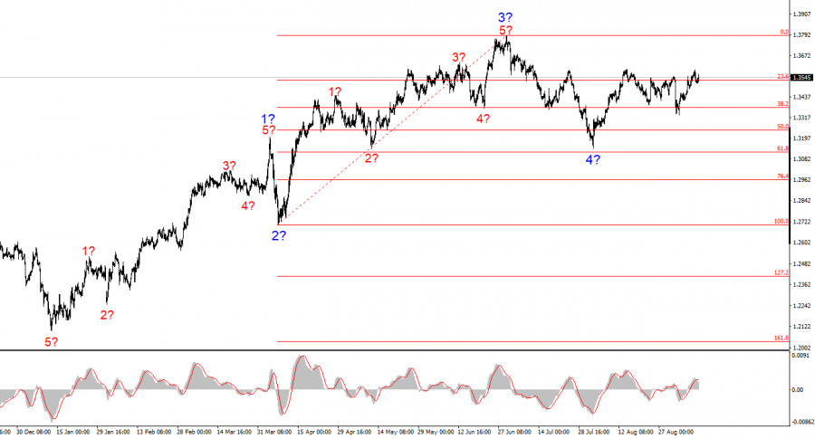 Курс инструмента GBP/USD в течение вторника снизился всего на 20 базовых пунктов, а в течение среды набрал те же самые 20 пунктов. Вчера вышел важный отчет Nonfarm Payrolls, значением не порадовавший абсолютно никого. И больше всего – ФРС. Если Центральный банк США во главе с Джеромом Пауэллом и рассчитывал на хотя бы немного позитива со стороны рынка труда, то нет. Рынок труда продолжает «охлаждаться», а сколько еще он будет охлаждаться под давлением политики протекционизма Дональда Трампа, никто не знает. Волновая разметка остается однозначной и не допускает никаких альтернативных сценариев. Мы увидели четкую трехволновую коррекцию, после которой следует ожидать импульсного участка тренда на пять волн. Дональд Трамп продолжает требовать от ФРС снижения процентной ставки, но теперь сам Джером Пауэлл и его коллеги уже не имеют возможности противостоять призывам Трампа, так как обязаны исполнять оба своих мандата: полная занятость и ценовая стабильность. Ситуация на рынке труда ухудшается с каждым месяцем, поэтому регулятор вынужден возобновить цикл смягчения денежно-кредитной политики, чтобы стимулировать создание рабочих мест. Не потому что так хочет Трамп, а потому что другого пути у регулятора нет. С какой стороны не изучай новостной фон, в нем крайне сложно найти хоть что-то позитивное для американской валюты. Исходя из этого, я и продолжаю ожидать повышения котировок инструмента GBP/USD. Напомню, что бывают такие ситуации, когда новостной фон противоречит волновой картине. Сейчас же – всё практически идеально. Британец растет в цене достаточно медленно, но куда ему или покупателям спешить? Все козыри – на руках у британской валюты, а у доллара – лишь двойки и тройки. И так как игра называется не «покер», эти двойки и тройки не принесут никакой выгоды валюте США.Обратите внимание на другие мои статьи: