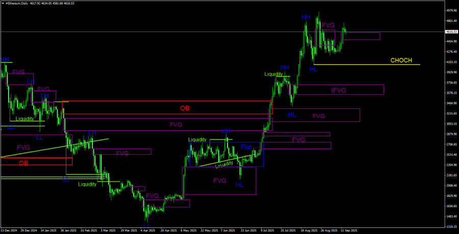 Торговые рекомендации по Эфиру(Ethereum) на 15 сентября по системе ICT.