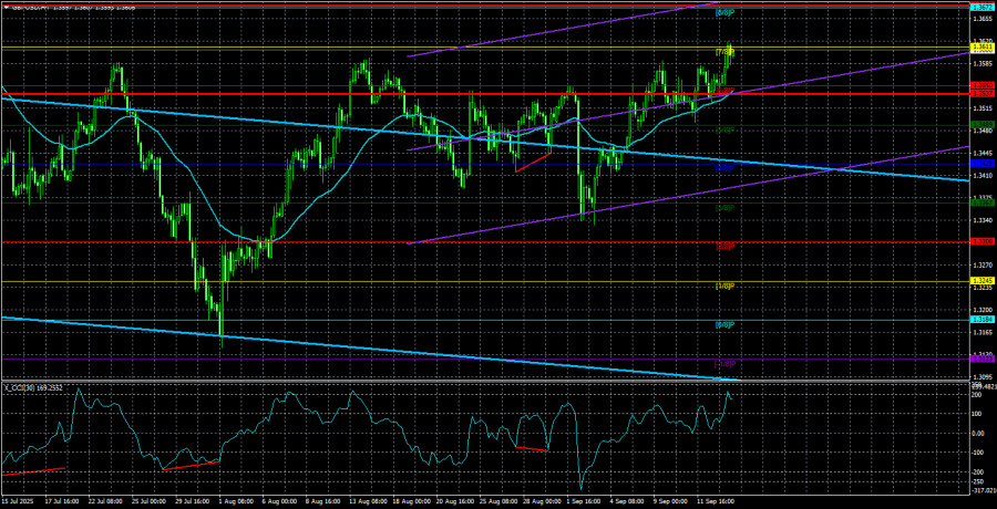 Валютная пара GBP/USD в понедельник весело и бодро полетела вверх. На понедельник в Великобритании и США не было запланировано ни одного важного события, поэтому мы ожидали обычный «скучный понедельник». Однако рынок решил иначе. Уже в среду вечером ФРС огласит результаты своего заседания, а четверг днем – Банк Англии сделает тоже самое. Мы уже говорили много раз, что у доллар вновь складываются благоприятнейшие обстоятельства для очередного падения. В этой статье об этом и поговорим. Первое, что следует сделать – открыть дневной ТФ. Теперь все увидели взлет британской валюты в первой половине 2025 года, чего с фунтом не случалось уже несколько лет, если не больше. После этого началась коррекция, которая длилась от силы месяц. В течение этого времени цена более или менее скорректировалась, отработала линию Сенкоу Спан Б, а также уровень Фибоначчи 38,2%. Таким образом, мы получили сразу два сильных технических сигнала о возобновлении восходящего тренда. Второй важный момент – цена сумела развить новое движение вверх. Были преодолены все линии индикатора Ишимоку, что и указало на возобновления тренда. Третий, и самый важный фактор – фундаментальный фон. Если доллар США валился вниз со скоростью света при сохранении ставок ФРС и снижении ставок БА, то чего ожидать от него, если ФРС будет снижать ставки, а Банк Англии – сохранять? Сюда можно добавить полную неопределенность в отношении будущего монетарной политики ФРС, ибо она во многом теперь будет зависеть от Дональда Трампа, который хочет видеть ставку на 3% ниже текущей. Хоть Трамп еще и не сумел добиться от ФРС «ультра-голубиного» подхода, опять-таки остается абсолютно непонятным, когда и сумеет ли Трамп поменять половину Комитета FOMC, как он, вероятно, задумал. Если сумеет, мы увидим ставку в районе 1%. Если не сумеет, это может стать «спасательным кругом» для доллара, который в этом случае хотя бы будет падать умеренно, а не со скоростью 24-фунтового ядра, сброшенного с многоэтажки. Ну а Банк Англии... его решения в ближайшее время будут связаны с инфляцией, как и положено центральному банку. Инфляция на Туманном Альбионе подскочила уже до 3,8% годовых, что в два раза выше, чем год назад. Если инфляция растет уже целый год, это не просто «всплеск, вызванный тарифами Трампа». Великобритания первая подписала торговое соглашение с президентом США, поэтому ее тарифы должны были «зацепить» лишь слегка. Тем не менее, инфляция начала расти еще задолго до вступления Трампа в должность, поэтому это уже тенденция. Если инфляция росла целый год, она вполне может продолжить этот процесс, о чем мы сможем узнать уже в среду. Если инфляция снова вырастет, тогда следующее смягчение монетарной политики произойдет очень нескоро. Для британского фунта это прекрасная возможность укрепить свои позиции еще больше, пока для этого есть все возможности. Средняя волатильность пары GBP/USD за последние 5 торговых дней составляет 69 пунктов. Для пары фунт/доллар это значение является «средним». Во вторник, 16 сентября, таким образом, мы ожидаем движения внутри диапазона, ограниченного уровнями 1,3537 и 1,3675. Старший канал линейной регрессии направлен вверх, что указывает на однозначную восходящую тенденцию. Индикатор CCI вновь заходил в область перепроданности, что еще раз предупредило о возобновлении восходящего тренда. Бл