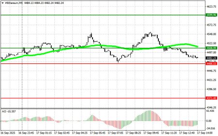 Сценарий №2: продавать эфир можно от верхней границы $4508 при отсутствии рыночной реакции на ее пробой в обратную сторону к уровням $4466 и $4371.