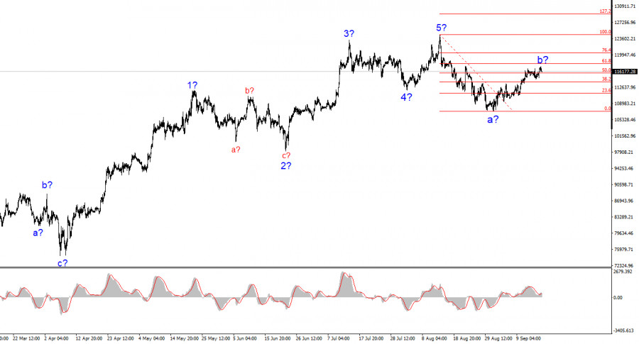 Исходя из проведенного анализа BTC/USD, я делаю вывод, что построение повышательной структуры завершено. Новостной фон не был причиной резкого роста биткоина в последние месяцы, но институциональные инвестиции сделали свое дело. Биткоин трижды не сумел преодолеть отметку 122000$, каждый подход к ней сопровождался довольно сильным падением. Соответственно, волна 5 могла приняла укороченный вид, и в этом случае повышательный набор волн полностью укомплектован. Исходя из этого, продажи сейчас более интересны. Биткоин восстановился в рамках волны 2 или b в область 113800-116000$, поэтому теперь я ожидаю нового снижения с целями, расположенными ниже лоу волны a.Основные принципы моего анализа: