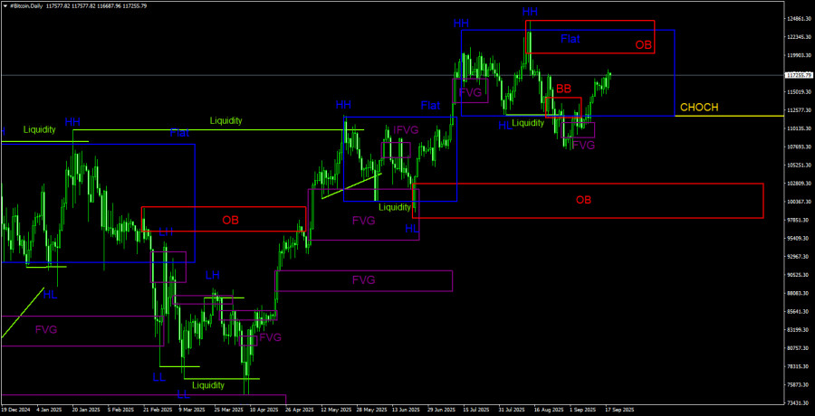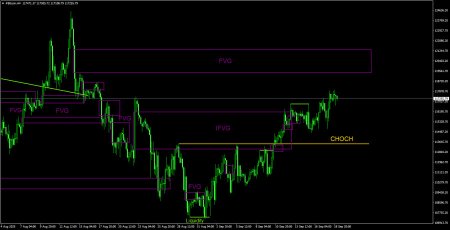 Торговые рекомендации по Биткоину(Bitcoin) на 15 сентября по системе ICT.
