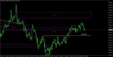 CHOCH – слом трендовой структуры. Liquidity – Ликвидность, Stop Loss трейдеров, которые маркет-мейкеры используют для набора своих позиций. FVG – Область ценовой неэффективности. Цена очень быстро проходит такие области, что указывает на полное отсутствие одной из сторон на рынке. В последствии цена имеет свойство возвращаться и получать реакцию от таких областей. IFVG – Инвертированная область ценовой неэффективности. После возврата к такой области, цена не получает от нее реакцию, а импульсно пробивает, а затем тестирует ее с другой стороны. OB – Ордер-блок. Свеча, на которой маркет-мейкер открывал позицию с целью забора ликвидности для формирования собственной позиции в противоположном направлении. Материал предоставлен компанией InstaForex - www.instaforex.comНовость предоставлена компанией