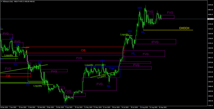 Торговые рекомендации по Эфиру(Ethereum) на 15 сентября по системе ICT.