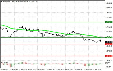 Сценарий №2: продавать биткоин можно от верхней границы $116 700 при отсутствии рыночной реакции на ее пробой в обратную сторону к уровням $116 200 и $115 400.