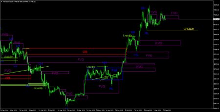 CHOCH – слом трендовой структуры. Liquidity – Ликвидность, Stop Loss трейдеров, которые маркет-мейкеры используют для набора своих позиций. FVG – Область ценовой неэффективности. Цена очень быстро проходит такие области, что указывает на полное отсутствие одной из сторон на рынке. В последствии цена имеет свойство возвращаться и получать реакцию от таких областей. IFVG – Инвертированная область ценовой неэффективности. После возврата к такой области, цена не получает от нее реакцию, а импульсно пробивает, а затем тестирует ее с другой стороны. OB – Ордер-блок. Свеча, на которой маркет-мейкер открывал позицию с целью забора ликвидности для формирования собственной позиции в противоположном направлении. Материал предоставлен компанией InstaForex - www.instaforex.comНовость предоставлена компанией