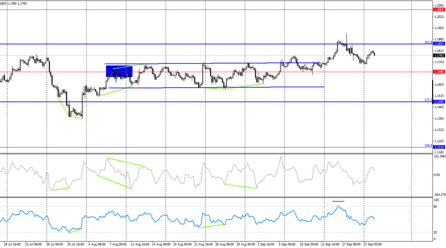 EUR/USD. 18 сентября. Джером Пауэлл не разочаровал быков, но те отступили.