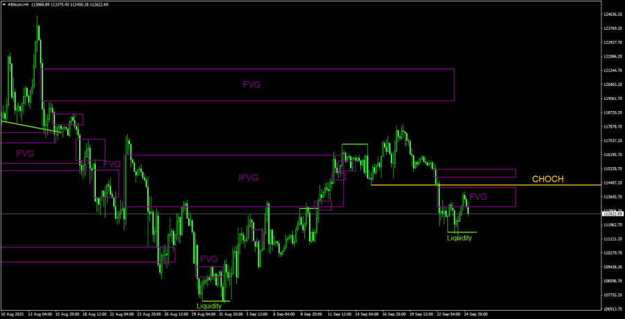 Торговые рекомендации по Биткоину(Bitcoin) на 25 сентября по системе ICT.