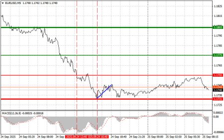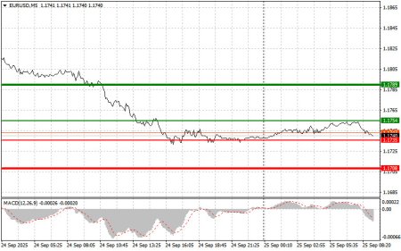 Обнародование значительных показателей продаж новых домов в США спровоцировало рост курса доллара и снижение курса европейской валюты. Оптимистичные данные заставили участников рынка скорректировать ожидания относительно будущих решений Федеральной резервной системы.Сегодня публикуются сведения о предварительном индикаторе потребительских настроений от GfK в Германии, размере кредитования частного сектора в еврозоне и динамике денежной массы M3. Индекс потребительской уверенности от GfK Германии служит ключевым барометром потребительских настроений и трат, которые, в свою очередь, оказывают существенное воздействие на экономический подъем. Размер кредитования частного сектора в еврозоне показывает уровень доступности кредитов для предприятий и населения. Рост объемов кредитования может указывать на подъем экономической активности и повышение инвестиционной привлекательности региона. Динамика денежной массы M3, включающей наличные деньги в обращении, вклады и другие ликвидные активы, может дать представление об актуальном уровне инфляции и монетарной политике Европейского центрального банка. В условиях нынешней экономической турбулентности эти показатели будут особенно ценными для трейдеров.Что касается внутридневной стратегии, то больше буду опираться на реализацию сценариев №1 и №2.Сценарии на покупкуСценарий №1: сегодня покупать евро можно при достижении цены в районе 1.1754 (зеленая линия на графике) с целью роста к уровню 1.1789. В точке 1.1789 планирую выходить из рынка, а также продавать евро в обратную сторону в расчете на движение в 30-35 пунктов от точки входа. Рассчитывать на рост евро можно только после хорошей статистики. Важно! Перед покупкой, убедитесь в том, что индикатор MACD находится выше нулевой отметки и только начинает свой рост от нее.Сценарий №2: покупать евро сегодня также собираюсь в случае двух подряд тестов цены 1.1735 в момент, когда индикатор MACD будет находиться в области перепроданности. Это ограничит нисходящий потенциал пары и приведет к обратному развороту рынка вверх. Можно ожидать рост к противоположным уровням 1.1754 и 1.1789.Сценарии на продажуСценарий №1: продавать евро планирую после достижения уровня 1.1735 (красная линия на графике). Целью будет уровень 1.1708, где собираюсь выходить из рынка и покупать сразу в обратную сторону (расчет на движение в 20-25 пунктов в обратную сторону от уровня). Давление на пару сегодня вернется при слабых данных. Важно! Перед продажей, убедитесь в том, что индикатор MACD находится ниже нулевой отметки и только начинает свое снижение от нее.Сценарий №2: продавать евро сегодня также собираюсь в случае двух подряд тестов цены 1.1754 в момент, когда индикатор MACD будет находиться в области перекупленности. Это ограничит восходящий потенциал пары и приведет к обратному развороту рынка вниз. Можно ожидать снижения к противоположному уровню 1.1735 и 1.1708.Что на графике:Тонкая зеленая линия – цена входа, по которой можно покупать торговый инструмент;