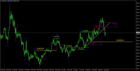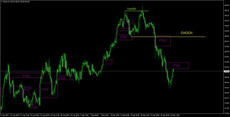 CHOCH – слом трендовой структуры. Liquidity – Ликвидность, Stop Loss трейдеров, которые маркет-мейкеры используют для набора своих позиций. FVG – Область ценовой неэффективности. Цена очень быстро проходит такие области, что указывает на полное отсутствие одной из сторон на рынке. В последствии цена имеет свойство возвращаться и получать реакцию от таких областей. IFVG – Инвертированная область ценовой неэффективности. После возврата к такой области, цена не получает от нее реакцию, а импульсно пробивает, а затем тестирует ее с другой стороны. OB – Ордер-блок. Свеча, на которой маркет-мейкер открывал позицию с целью забора ликвидности для формирования собственной позиции в противоположном направлении.Материал предоставлен компанией InstaForex - www.instaforex.comНовость предоставлена компанией