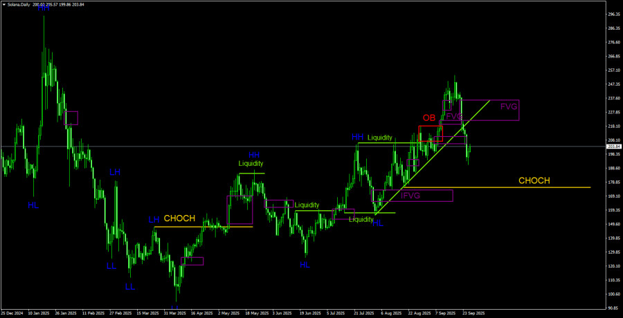 Торговые рекомендации по Солане(Solana) на 27 сентября по системе ICT.