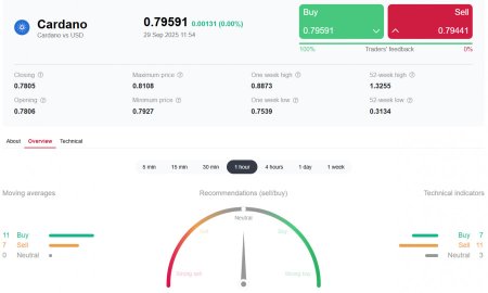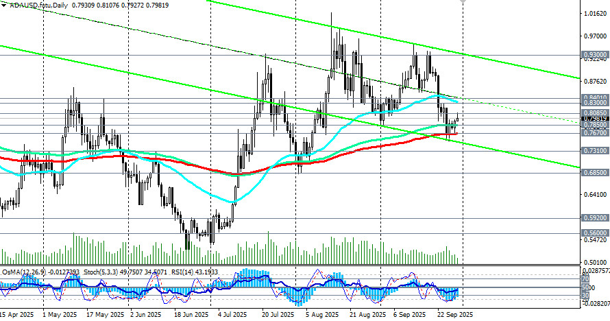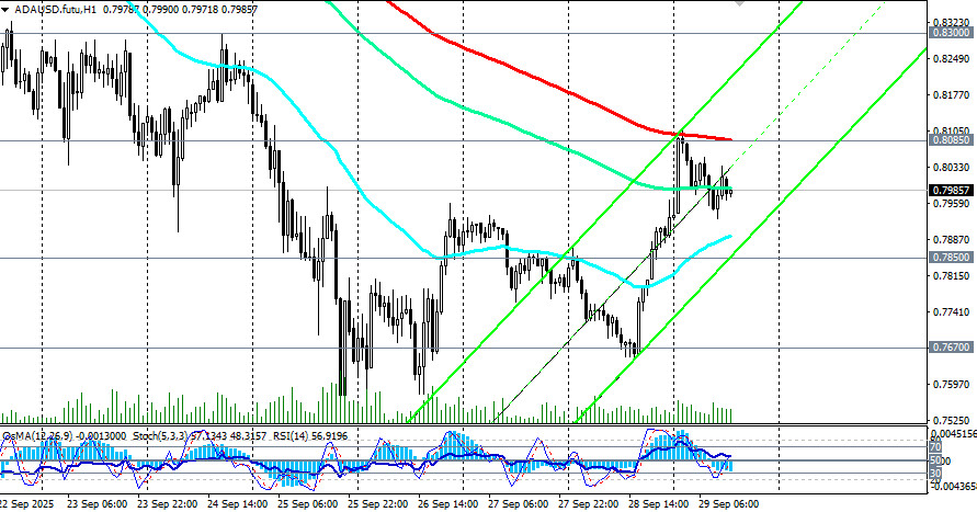 Техническая картина С технической же точки зрения, ADA/USD продолжает торговаться в зоне устойчивого бычьего рынка, выше ключевых уровней поддержки 0.7670 (ЕМА200 на дневном графике) и 0.5600 (ЕМА200 на недельном графике). На момент публикации данной статьи, ADA/USD торговалась вблизи отметки 0.7985. Пробой отметок 0.8085 и 0.8400 будет означать возврат цены также и в зону краткосрочного бычьего рынка. В целом, сохраняется позитивное отношение инвесторов к покупкам Cardano (ADA). *) также см. ADA/USD: сценарии динамики на 29.09.2025 Вывод Похоже, инвесторы, все же предпочитают дождаться публикаций на этой неделе американских данных с рынка труда и по бизнес-активности (PMI ISM), но также готовы и к высоким рискам. В то же время, в долгосрочном периоде, инвесторы пытаются сохранять оптимизм, ожидая, что торговая нестабильность продолжит поддерживать криптовалюты как активы-убежища. Разработка четких юридических правил также будет способствовать их росту, отметили мы в нашем предыдущем обзоре.Материал предоставлен компанией InstaForex - www.instaforex.com