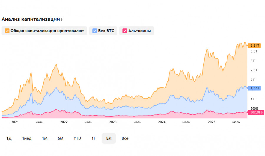 Почему падают активыМонетарные перспективы политики ФРСИнвесторы все же обеспокоены возможным отказом ФРС от мягкой монетарной политики в ближайшее время. По итогам завершившегося 17 сентября заседания, когда ставка была понижена на 0,25%, глава регулятора Джером Пауэлл подчеркнул необходимость учитывать одновременно риски ускорения инфляции и ослабления рынка труда, что усилило неопределённость. Макростатистика подкрепляет эти сомнения: американская экономика показала рост на 3,8% во 2-м квартале, а годовой базовый PCE за август остался на уровне 2,9%. Оба фактора уменьшают стимулы для дополнительного смягчения и создают давление на активы, не являющиеся долларом.Политические рискиРынок также встревожен сообщениями СМИ о планах Белого дома ввести плату в размере 100000 долларов за визы H 1B для высококвалифицированных иностранных специалистов. Это может ударить по технологическим компаниям, работающим в сфере криптобизнеса, сильно зависящим от иностранных кадров (в первую очередь из Индии и Китая), что замедлит инновации в США.Результат — распродажи и частичное восстановлениеЭти факторы вызвали крупные ликвидации на рынке криптовалют. Тем не менее, за выходные цены отскочили, и в понедельник большинство монет продолжили рост. Например, ADA/USD, упавшая в конце прошлой недели до 0.7540 (минимум с 8 августа), за выходные восстановилась примерно на 5% и в понедельник достигла 0.8100. Отскок произошёл от зон ключевых среднесрочных уровней поддержки в районе 0.7850 и 0.7670.Статистика рынкаОбщая капитализация крипторынка за сутки выросла на 2% до 3,85 трлн, по данным CoinMarketCap. Большинство топ 10 монет прибавили 3–4%, сильнее всех вырос XRP — на 4,1%. Индекс «страха и жадности» вернулся к нейтральным значениям после падения до пятимесячного минимума. В пятницу, 26 сентября, он опустился до 28 пунктов (зона «страха»), но к текущему моменту восстановился до 53 пунктов (из 100), что указывает на возросший интерес к покупкам, хотя инвесторы всё ещё сохраняют осторожность.