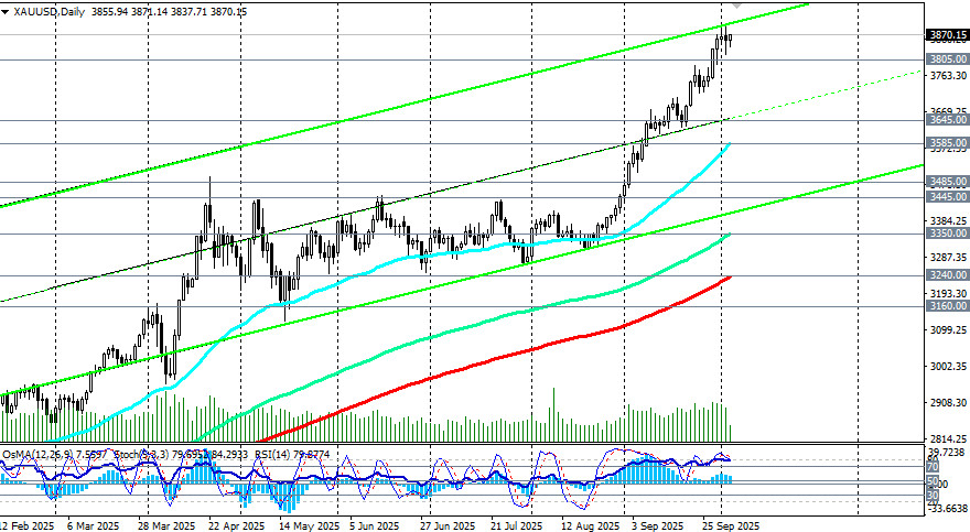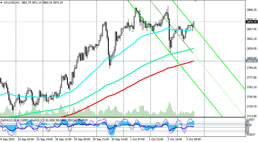 В то время как перспективы доллара остаются негативными, фундаментальный фон складывается в пользу традиционных защитных активов, в частности золота. Вероятно, совсем скоро мы сможем увидеть обновление исторических максимумов, и не исключено, что уже сегодня, если данные отчета ISM совсем разочаруют инвесторов, предположили мы в нашем сегодняшнем фундаментальном анализе и обзоре «XAU/USD: фундаментальный фон складывается в пользу роста цены». Общий тренд остается восходящим, а XAU/USD торгуется выше ключевых уровней поддержки и в зоне устойчивого бычьего рынка, среднесрочного – выше 3240.00 (ЕМА200 на дневном графике), долгосрочного – выше 2450.00 (ЕМА200 на недельном графике). Пробой сегодняшнего максимума 3876.00, а затем вчерашнего и рекордного 3896.00 мог бы стать сигналом для наращивания длинных позиций. В альтернативном сценарии и если доллар начнет укрепляться, то после пробоя цены открытия сегодняшнего дня 3856.00, а затем сегодняшнего внутридневного минимума 3838.00 цена может продолжить снижаться к краткосрочному уровню поддержки 3805.00 (ЕМА200 на 1-часовом графике) и в сторону локального уровня поддержки 3792.00. Пробой данного уровня поддержки может спровоцировать продолжение коррекции к зоне поддержки вокруг уровней 3645.00 (ЕМА200 на 4-часовом графике), 3600.00, 3585.00 (ЕМА50 на дневном графике), вблизи которых, учитывая бычий тренд пары, можно будет расположить новые отложенные ордера на покупку, рассчитывая на отбой и возобновление роста. Лишь пробой ключевых уровней поддержки 3240.00 (ЕМА200 на дневном графике), 3160.00 (ЕМА50 на недельном графике) будет означать слом среднесрочного бычьего тренда, что сделает преимущественными короткие позиции в среднесрочном периоде. Пока в преимуществе длинные позиции, логичнее искать возможности для новых покупок. В целом, общий тренд XAU/USD остается восходящим. открыть торговый счет + зарегистрироваться в системе копирования сигналов + инвестировать в ПАММ-системеМатериал предоставлен компанией InstaForex - www.instaforex.com