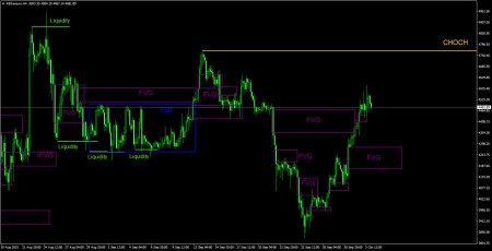 CHOCH – слом трендовой структуры. Liquidity – Ликвидность, Stop Loss трейдеров, которые маркет-мейкеры используют для набора своих позиций. FVG – Область ценовой неэффективности. Цена очень быстро проходит такие области, что указывает на полное отсутствие одной из сторон на рынке. В последствии цена имеет свойство возвращаться и получать реакцию от таких областей. IFVG – Инвертированная область ценовой неэффективности. После возврата к такой области, цена не получает от нее реакцию, а импульсно пробивает, а затем тестирует ее с другой стороны. OB – Ордер-блок. Свеча, на которой маркет-мейкер открывал позицию с целью забора ликвидности для формирования собственной позиции в противоположном направлении. Материал предоставлен компанией InstaForex - www.instaforex.comНовость предоставлена компанией