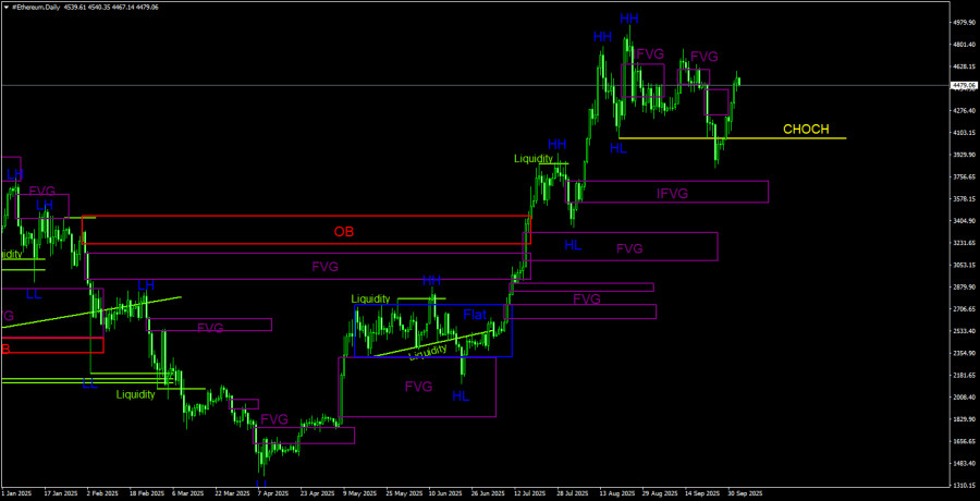 Торговые рекомендации по Эфиру(Ethereum) на 1 октября по системе ICT.