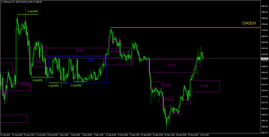 Торговые рекомендации по Эфиру(Ethereum) на 4 октября по системе ICT.