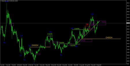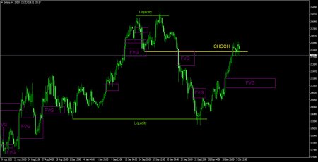 CHOCH – слом трендовой структуры. Liquidity – Ликвидность, Stop Loss трейдеров, которые маркет-мейкеры используют для набора своих позиций. FVG – Область ценовой неэффективности. Цена очень быстро проходит такие области, что указывает на полное отсутствие одной из сторон на рынке. В последствии цена имеет свойство возвращаться и получать реакцию от таких областей. IFVG – Инвертированная область ценовой неэффективности. После возврата к такой области, цена не получает от нее реакцию, а импульсно пробивает, а затем тестирует ее с другой стороны. OB – Ордер-блок. Свеча, на которой маркет-мейкер открывал позицию с целью забора ликвидности для формирования собственной позиции в противоположном направлении.Материал предоставлен компанией InstaForex - www.instaforex.comНовость предоставлена компанией