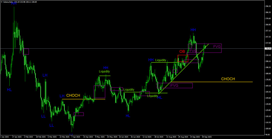 Торговые рекомендации по Солане(Solana) на 4 октября по системе ICT.