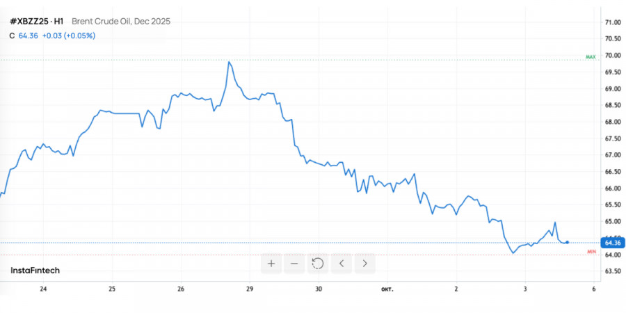 Рынок нефти в начале октября 2025 года проживает период ощутимого давления и структурного перелома. За последние дни котировки Brent опустились к отметке $64 за баррель, а WTI — к $60–61. Такое снижение соответствует недельному падению в размере 7–8% и отражает усиливающийся дисбаланс между спросом и предложением. Фундаментальная причина — политика OPEC+, которая продолжает курс на увеличение добычи вопреки сезонным особенностям и слабости глобального спроса.