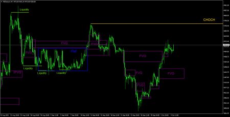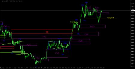 CHOCH – слом трендовой структуры. Liquidity – Ликвидность, Stop Loss трейдеров, которые маркет-мейкеры используют для набора своих позиций. FVG – Область ценовой неэффективности. Цена очень быстро проходит такие области, что указывает на полное отсутствие одной из сторон на рынке. В последствии цена имеет свойство возвращаться и получать реакцию от таких областей. IFVG – Инвертированная область ценовой неэффективности. После возврата к такой области, цена не получает от нее реакцию, а импульсно пробивает, а затем тестирует ее с другой стороны. OB – Ордер-блок. Свеча, на которой маркет-мейкер открывал позицию с целью забора ликвидности для формирования собственной позиции в противоположном направлении. Материал предоставлен компанией InstaForex - www.instaforex.comНовость предоставлена компанией