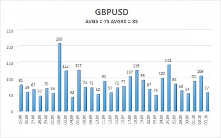 Валютная пара GBP/USD в течение пятницы немного выросла, но волатильность была практически минимальной. В этот день в Америке должны были быть опубликованы отчеты NonFarm Payrolls и уровень безработицы, но еще за несколько дней стало понятно, что этого не случится из-за «шатдауна», в следствие которого большая часть государственных структур ушла в неоплачиваемый отпуск. Однако в пятницу все же был опубликован индекс деловой активности ISM в секторе услуг, который провалился вслед за аналогичным индексом в секторе производства. Поэтому причины для падения у доллара имелись и веские, но в очередной раз за последнее время доллар практически ничего не потерял, хотя для этого имелись все основания. Как мы уже говорили, мы считаем такое движение пары в последние недели и даже месяцы алогичным. Лучше всего картина происходящего видна сейчас на дневном ТФ. Если поначалу пара ушла в техническую коррекцию после сильного роста, и это было закономерно, то сейчас уже почти два месяца движений практически нет – флэт. Однако фундаментальный фон для доллара не просто не стал лучше или не поменялся. Он с каждой неделей становится только хуже. Напомним, что только за последние пару недель рынок труда США еще больше сократился, индексы деловой активности падают, инфляция растет, ФРС в любом случае настроена на смягчение монетарной политики, Дональд Трамп обложил пошлинами киноиндустрию, медикаменты, грузовики и мебель, начался «шатдаун». Таким образом, если бы фунт стерлингов сейчас находился выше уровня 1,40$, мы бы считали, что все логично и закономерно. Хотим также заметить, что не следует искать черную кошку в темной комнате. Особенно, если ее там нет. Многие аналитики пытаются объяснить отсутствие падения доллара при помощи якобы «бычьих» для доллара факторов, забывая про огромное количество «медвежьих». К примеру, на прошлой неделе некоторые представители ФРС заявили, что поддерживают лишь умеренное снижение ключевой ставки. Но что в этом удивительного или «бычьего» для доллара? Напомним, что чиновники ФРС никогда и не поддерживали агрессивное снижение ставок. Даже когда стало ясно, что рынок труда испытывает серьезные проблемы из-за политики Дональда Трампа. Еще в начале года Пауэлл и его коллеги говорили о максимум двух снижения ключевой ставки в этом году. Сейчас Пауэлл допускает суммарно три смягчения. То есть настрой ФРС стал более «голубиным», но никак не наоборот. Тот факт, что большинство представителей FOMC не поддерживает агрессивное смягчение, не говорит об их нежелании снижать ставку в принципе. А для доллара США сейчас любое смягчение ФРС – это очередной провал, так как ЕЦБ завершил цикл снижения ставок, Банк Англии, скорее всего, взял длительную паузу из-за высокой инфляции. Таким образом, даже два снижения ставки до конца года – это «голубиный» план действий Американского регулятора, который должен провоцировать новые падения доллара. Средняя волатильность пары GBP/USD за последние 5 торговых дней составляет 75 пунктов. Для пары фунт/доллар это значение является «средним». В понедельник, 6 октября, таким образом, мы ожидаем движения внутри диапазона, ограниченного уровнями 1,3401 и 1,3551. Старший канал линейной регрессии направлен вверх, что указывает на однозначную восходящую тенденцию. Индикатор CCI заходил в область перепроданности, что 