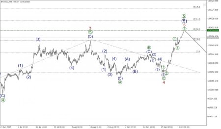 BTC/USD 6 октября. Большая вероятность смены тренда после достижения максимума 129000!