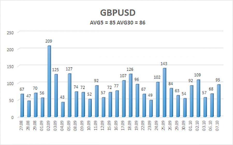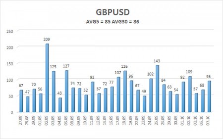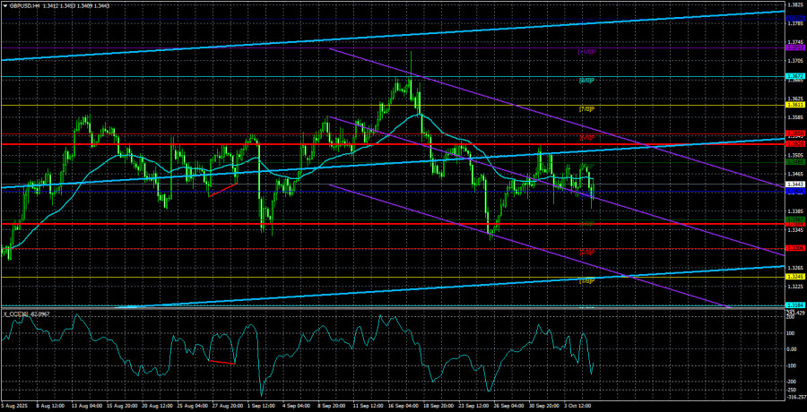 Валютная пара GBP/USD в течение вновь торговалась с понижением, а мы продолжаем считать такое движение полностью алогичным. В статье по EUR/USD мы предположили, что эта пара находится во флэте на дневном ТФ. В случае с парой GBP/USD тут и предполагать нечего, ибо флэт виден невооруженным глазом. Так как корреляция между евро и фунтом всегда была высокой, есть все основания предполагать, что обе валюты находятся во флэте. Если это так, то текущее падение фунта – абсолютно незакономерное, исходя из макроэкономического и фундаментального фона – является чисто техническим. Даже на 4-часовом ТФ видно, как цена плясала в последний месяц во все стороны. О чем говорят такие движения? О том, что рынок никак не может определиться, что ему делать дальше. Почему не может определиться? Потому что на рынке флэт, который используется маркет-мейкерами для накопления или распределения позиций. Следует напомнить, что маркет-мейкеры, то есть очень крупные игроки, которые и двигают рынок, не могут просто выйти и купить пару миллиардов долларов. Позицию нужно сформировать. А для того, чтобы ее сформировать требуется время, потому что чтобы купить несколько миллиардов долларов нужно, чтобы их кто-нибудь продал. Это не то же самое, что прийти в банк и купить 100 долларов. И периоды флэта – это как раз периоды либо накопления новых позиций, либо их распределения, когда маркет-мейкер хочет закрыть свою сделку. Во флэте цена относительно стабильна, поэтому лучшего времени не найти. Следовательно, внутри флэта крупные игроки совершают сделки, которые вообще не обязаны совпадать с макроэкономикой или фундаментом. Крупному банку нужно закрыть длинную позицию – он ее закрывает. Вероятно, он не будет судорожно открывать новые длинные позиции, потому что в США начался «шатдаун». Все трейдеры знают, что после флэта начинается тренд. Это означает, что новые позиции сформированы, можно двигаться в определенном направлении. Таким образом, какие бы локальные движения сейчас не показывала пара GBP/USD, они практически никакого значения не имеют для среднесрочных перспектив. Верить сейчас в рост доллара – все равно, что надеяться на прибытие инопланетян, которые решат все проблемы землян. Доллар рос около 16-17 лет, когда у него имелись на то причины. Сейчас, когда даже центробанки начали отказываться от долларовых резервов, а Дональд Трамп открыто заявляет о необходимости более дешевого доллара, какие шансы на возврат пары к ценовому паритету, откуда он и начал свое восхождение в начале года? И уж, естественно, доллар растет не из-за мнимых уступок Трампа демократам. Во вторник появилась информация о том, что вроде бы президент США может продлить сроки действия медицинских и социальных программ, которые сам же и ограничил «Одним, большим и прекрасным законом». Если это сообщение – важнее падающего рынка труда, «голубиного» настроя ФРС, сокращающейся дивергенции ставок между ФедРезервом и другими регуляторами, то нет. Это сообщение не важнее всего вышеперечисленного. И выглядит оно, как ложка меда в бочке дегтя, в которой доллар варится уже 9 месяцев. Средняя волатильность пары GBP/USD за последние 5 торговых дней составляет 85 пунктов. Для пары фунт/доллар это значение является «средним». В среду, 8 октября, таким образом, мы ожидаем движения внутри диапазона, ограниченного уровнями 1,3358