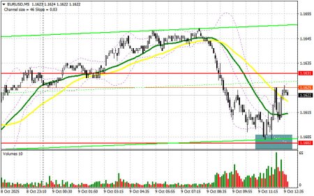 В своем утреннем прогнозе я обращал внимание на уровень 1.1602 и планировал от него принимать решения по входу в рынок. Давайте посмотрим на 5-минутный график и разберемся с тем, что там произошло. Снижение и формирование ложного пробоя в районе 1.1602 привели к точке входа на покупку евро, что вылилось в рост пары на 20 пунктов. На вторую половину дня техническая картина была пересмотрена.Для открытия длинных позиций по EURUSD требуется:Учитывая какое давление сейчас оказывается на евро, не помогли даже хорошие данные по росту положительного сальдо баланса внешней торговли Германии. Учитывая шатдаун в США и отсутствие новой фундаментальной статистики, конечно же во второй половине дня акцент будет смещен на выступления представителей ФРС, которые все больше и больше расходятся во взглядах, что делать дальше с процентными ставками. Ожидаются выступления председателя совета управляющих ФРС Джерома Пауэлла, и членов FOMC в лице Мишель Боуман, Майкла С. Барра и Мишель Боуман. В случае дальнейшего падения евро лишь формирование ложного пробоя в районе 1.1602 по аналогии с тем, что я разбирал выше, будет поводом для открытия новых длинных позиций в расчете на обновление сопротивления 1.1634. Прорыв и обратный тест этого диапазона станут подтверждением правильной точки вход с выходом к области 1.1661. Самой дальней целью будет уровень 1.1687, где буду фиксировать прибыль. При варианте дальнейшего снижения EUR/USD и отсутствия активности в районе 1.1602, что более вероятно, пара продолжит падение. Медведи в таком случае сумеют дотянуться до 1.1576. Лишь после формирования там ложного пробоя собираюсь действовать на покупку евро. Открывать длинные позиции сразу на отскок планирую от 1.1530 с целью восходящей коррекции в 30-35 пунктов внутри дня.Для открытия коротких позиций по EURUSD требуется: Продавцы проявили себя, но пробиться ниже недельного минимума пока не удалось. В случае роста пары после выступления представителей ФРС действовать собираюсь только в районе ближайшего сопротивления 1.1634. Лишь формирование там ложного пробоя будет для меня поводом для коротких позиций с целью снижения к уровню 1.1602. Прорыв и закрепление ниже этого диапазона станут подходящим вариантом на продажу уже с движением в район 1.1576. Самой дальней целью выступит область 1.1530, где буду фиксировать прибыль. В случае движения вверх EUR/USD во второй половине дня, а также отсутствия активных действий медведей в районе 1.1634, где проходят и средние скользящие, играющие на стороне продавцов, покупатели получат шанс на более крупный рывок, что откроет дорогу в район следующего сопротивления 1.1661. Продавать там буду только после неудачного закрепления. Открывать короткие позиции сразу на отскок я планирую от 1.1687 с целью нисходящей коррекции в 30-35 пунктов.Рекомендую ознакомиться:В COT-отчете (Commitment of Traders) за 23 сентября наблюдался рост коротких позиций и сокращение длинных. Ожидания дальнейшего снижения Федеральной резервной системой процентных ставкам продолжает оказывать давление на американский доллар. Однако покупателей евро также не становится больше, так как политические проблемы во Франции и риски нового витка роста инфляции заставляют ЕЦБ действовать куда более осторожно, тормозя темпы экономического роста. В COT-отчете указано, что длинные некоммерческие позиции сократились на 789 до уров