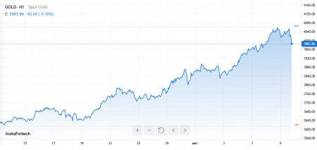 В четверг утром цены на золото незначительно просели во время азиатских торгов: спотовая цена металла снизилась на 0,1% до $4 039,34 за унцию, а декабрьские фьючерсы упали на 0,3% – до $4 056,67 к 09:30 по московскому времени. При этом накануне спотовая цена впервые в истории пересекла планку $4 000 за унцию, зафиксировав абсолютный рекорд – $4 059,34.