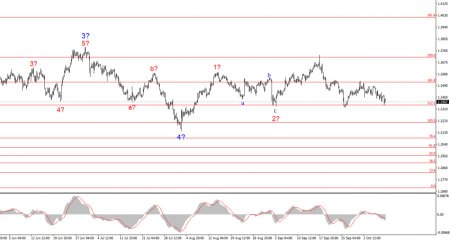 Курс инструмента GBP/USD продолжает снижаться, ломая текущую волновую разметку. Если бы новостной фон резко развернулся на 180 градусов для доллара США, все было бы ясно и понятно. Волновая разметка – это важный элемент анализа, но с глобальными событиями в мире тоже не поспоришь. Однако, на мой взгляд, новостной фон для доллара остается очень слабым, каким он и был весь 2025 год. Напомню, что только за 9 дней октября валюта США столкнулась с «шатдауном», слабыми индексами деловой активности ISM в сферах услуг и производства, совершенно провальным отчетом ADP. На этой неделе вышел протокол FOMC, который подтвердил ожидания рынка о готовности ФРС продолжать смягчение.Следовательно, спрос на доллар должен, скорее, снижаться, чем повышаться. Однако что-то идет явно не по плану. На мой взгляд, протокол ФРС не стоит принимать во внимание и делать на основании него выводы. Он отражает настроение управляющих ФРС трехнедельной давности. Время идет, ситуация меняется. 17 сентября «шатдауном» в Америке даже не пахло, поэтому это тот случай, когда многое изменилось за короткий срок.