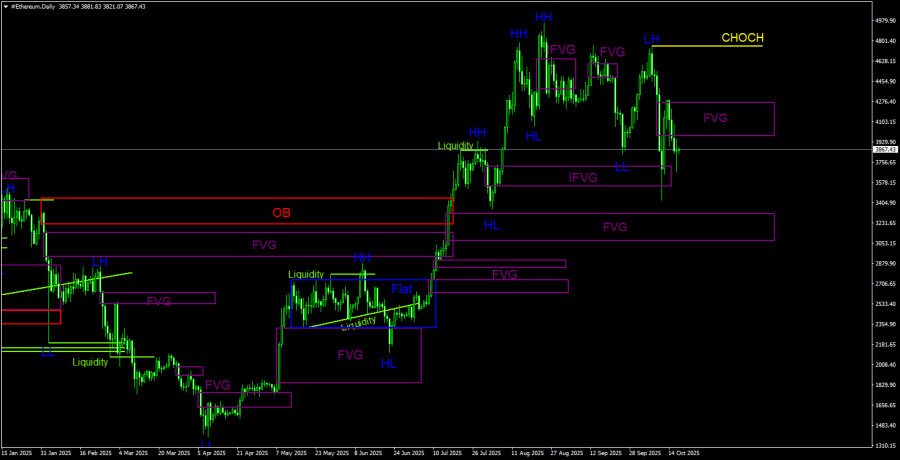 Торговые рекомендации по Эфиру(Ethereum) на 18 октября по системе ICT.
