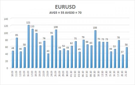 Обзор пары EUR/USD. 22 октября. Когда заканчивается скучный понедельник, начинается скучный вторник.