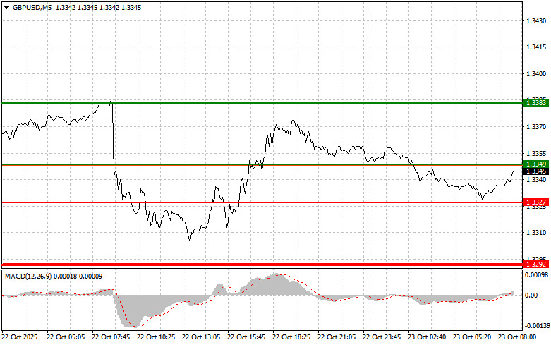 Разбор сделок и советы по торговле британским фунтомТест цены 1.3326 пришелся на момент, когда индикатор MACD только начинал движение вверх от нулевой отметки, что стало подтверждением правильной точки входа на покупку фунта, что вылилось в рост на 30 пунктов.Фунт рухнул вчера в первой половине дня после новостей о том, что базовые цены в Великобритании снизились. Этот неожиданный поворот событий спровоцировал волну распродаж британской валюты, поскольку инвесторы пересмотрели свои ожидания относительно дальнейших действий Банка Англии. Ослабление инфляционного давления, по всей видимости, даст регулятору больше пространства для маневра и уменьшит необходимость в агрессивном поддержании процентных ставок. Однако, не стоит делать поспешных выводов. Ситуация в британской экономике остается сложной и многофакторной. Помимо инфляции, на фунт оказывают влияние политические риски.Сегодня ожидается публикация данных от Конфедерации британских промышленников, отражающих состояние портфеля промышленных заказов. Параллельно с этим выступит член Комитета по монетарной политике Банка Англии Свати Дингра, чьи высказывания, в случае проявления голубиных настроений после вчерашних инфляционных данных, могут вновь оказать давление на курс британской валюты. Что касается внутридневной стратегии, то больше буду опираться на реализацию сценариев №1 №2.Сценарии на покупкуСценарий №1: покупать фунт сегодня планирую при достижении точки входа в районе 1.3349 (зеленая линия на графике) с целью роста к уровню 1.3383 (более толстая зеленая линия на графике). В районе 1.3383 собираюсь выходить из покупок и открывать продажи в обратную сторону (расчет на движение в 30-35 пунктов в обратную сторону от уровня). Рассчитывать на рост фунта сегодня можно только после очень хорошей статистики. Важно! Перед покупкой, убедитесь в том, что индикатор MACD находится выше нулевой отметки и только начинает свой рост от нее.Сценарий №2: покупать фунт сегодня также планирую в случае двух подряд тестов цены 1.3327 в момент, когда индикатор MACD будет находиться в области перепроданности. Это ограничит нисходящий потенциал пары и приведет к обратному развороту рынка вверх. Можно ожидать рост к противоположным уровням 1.3349 и 1.3383.Сценарии на продажу Сценарий №1: продавать фунт сегодня планирую после обновления уровня 1.3327 (красная линия на графике), что приведет к быстрому снижению пары. Ключевой целью продавцов будет уровень 1.3292 где собираюсь выходить из продаж, а также открывать сразу покупки в обратную сторону (расчет на движение в 20-25 пунктов в обратную сторону от уровня). Продавцы фунта вернутся при слабых данных. Важно! Перед продажей, убедитесь в том, что индикатор MACD находится ниже нулевой отметки и только начинает свое снижение от нее. Сценарий №2: продавать фунт сегодня также планирую в случае двух подряд тестов цены 1.3349 в момент, когда индикатор MACD будет находиться в области перекупленности. Это ограничит восходящий потенциал пары и приведет к обратному развороту рынка вниз. Можно ожидать снижения к противоположному уровню 1.3327 и 1.3292.Что на графике: Тонкая зеленая линия – цена входа, по которой можно покупать торговый инструмент. Толстая зеленая линия – предположительная цена, где можно расставлять Take profit или самостоятельно фиксировать прибыли, так как выше этого 