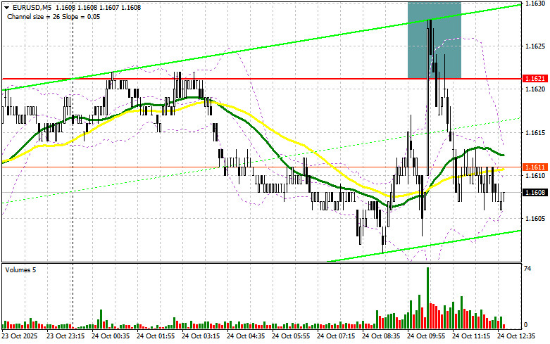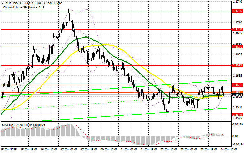 В своем утреннем прогнозе я обращал внимание на уровень 1.1621 и планировал от него принимать решения по входу в рынок. Давайте посмотрим на 5-минутный график и разберемся с тем, что там произошло. Рост и формирование ложного пробоя в районе 1.1621 привели к хорошей точке входа на продажу евро, что вылилось в движение пары вниз на 15 пунктов. На вторую половину дня техническая картина не пересматривалась.Для открытия длинных позиций по EURUSD требуется:Возврат индекса деловой активности в производственном секторе еврозоны в район 50 пунктов и рост активности в сфере услуг были восприняты покупателями евро с позитивом, он до крупного роста пары дело так и не дошло, что указывает на неопределённость, с которой продолжают сталкиваться трейдеры. Одной из них являются ожидаемый данные по США. Речь идет об индексе потребительских цен США и индексе потребительских цен без учета цен на продукты питания и энергоносители. Отчет долго откладывался из-за шатдауна в США, но все же будет опубликован сегодня во второй половине дня. Кроме этого, выйдут цифры по индексу деловой активности в производственном секторе США, индексу деловой активности в секторе услуг и композитному индексу PMI. Завершением дня станут показатели по индексу настроения потребителей от Университета Мичигана и инфляционные ожидания. При резком ослаблении инфляции ослабнут позиции и американского доллара. В ином случае давление на пару EUR/USD вернется, чем и собираюсь воспользоваться. Лишь формирование ложного пробоя в районе 1.1579 будет поводом для открытия новых длинных позиций в расчете на возврат к сопротивлению 1.1621. Прорыв и обратный тест этого диапазона станут подтверждением правильной точки вход с выходом к области 1.1649. Самой дальней целью будет уровень 1.1675, где буду фиксировать прибыль. При варианте снижения EUR/USD и отсутствия активности в районе 1.1579, давление на евро только возрастет. Медведи в таком случае сумеют дотянуться до 1.1545. Лишь после формирования там ложного пробоя собираюсь действовать на покупку евро. Открывать длинные позиции сразу на отскок планирую от 1.1520 с целью восходящей коррекции в 30-35 пунктов внутри дня.Для открытия коротких позиций по EURUSD требуется: Продавцы проявили себя, ограничив восходящий потенциал евро даже после хорошей статистики по активности индексов PMI еврозоны. В случае еще одной попытки роста евро в ходе американских торгов действовать буду после формирования ложного пробоя в районе 1.1621, где чуть ниже проходят средние скользящие, играющие на стороне медведей. Этого будет достаточно для открытия коротких позиций с целью снижения к уровню 1.1579. Прорыв и закрепление ниже этого диапазона станут подходящим вариантом на продажу уже с движением в район 1.1545. Самой дальней целью выступит область 1.1520, где буду фиксировать прибыль. В случае движения вверх EUR/USD во второй половине дня, а также отсутствия активных действий медведей в районе 1.1621, покупатели получат шанс на более крупную коррекцию, что откроет дорогу в район следующего сопротивления 1.1649. Продавать там буду только после неудачного закрепления. Открывать короткие позиции сразу на отскок я планирую от 1.1675 с целью нисходящей коррекции в 30-35 пунктов.Рекомендую ознакомиться:Из-за шатдауна в США свежие данные по Commitment of Traders не публикуются. Последние актуальные лишь за 23 сентября.В COT-отч