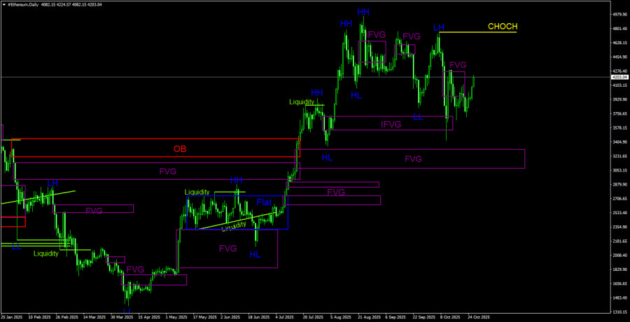 Торговые рекомендации по Эфиру(Ethereum) на 25 октября по системе ICT.