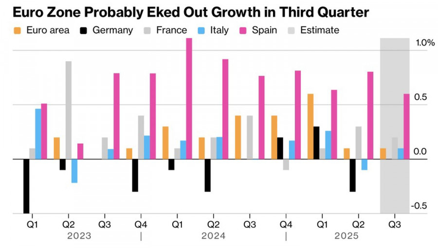 У рынка память коротка. Когда доллар США начал укрепляться с середины сентября, это связывали и с эскалацией торгового конфликта, и с переоценкой рыночных взглядов на судьбу ставки по федеральным фондам, и с расколом в рядах ФРС, и с политическим кризисом во Франции. Инвесторы как будто забыли, что одной из основных причин проседания индекса USD в первом полугодии на 10% стало желание Белого дома видеть более слабого «американца». Визит Дональда Трампа и его команды в Азию об этом напомнил. Скотт Бессент на встрече со своей коллегой Сацуки Катаямой подчеркнул, что Банк Японии должен придерживаться разумной денежно-кредитной политики. На фоне сильного рынка труда и превышающей более трех лет таргет в 3% инфляции это означает повышение ставок в ближайшем будущем. Вашингтон не устраивает стремительное ралли USD/JPY. Он использует вербальные интервенции. Падение пары будет означать ослабление доллара США. Именно то, что хотел бы увидеть хозяин Белого дома. Человек предполагает, а бог располагает. Пока ослабление гринбэка идет со скрипом. Казалось бы, твердое намерение ФРС продолжать цикл монетарной экспансии на фоне деэскалации торгового конфликта, роста глобального аппетита к риску и снижения спроса на активы-убежища должны были подтолкнуть котировки EUR/USD вверх. Однако основная валютная пара не спешит восстанавливать восходящий тренд. Динамика европейских экономик