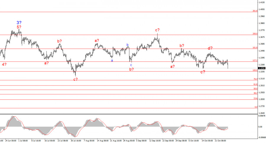 Исходя из проведенного анализа EUR/USD, я делаю вывод, что инструмент продолжает построение повышательного участка тренда. Сейчас на рынке сложилась пауза, но политика Дональда Трампа и ФРС остаются весомыми факторами падения американской валюты. Цели текущего участка тренда могут простираться вплоть до 25-й фигуры. В данное время мы можем наблюдать построение коррекционной волны 4, которая принимает очень сложный и протяженный вид. Следовательно, в ближайшее время я по-прежнему рассматриваю только покупки. До конца года я жду повышения евровалюты к отметке 1,2245, что соответствует 200,0% по Фибоначчи.Волновая картина по GBP/USD: