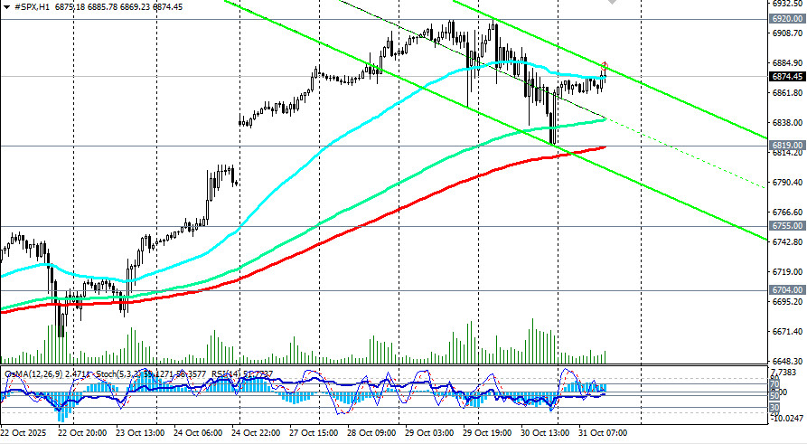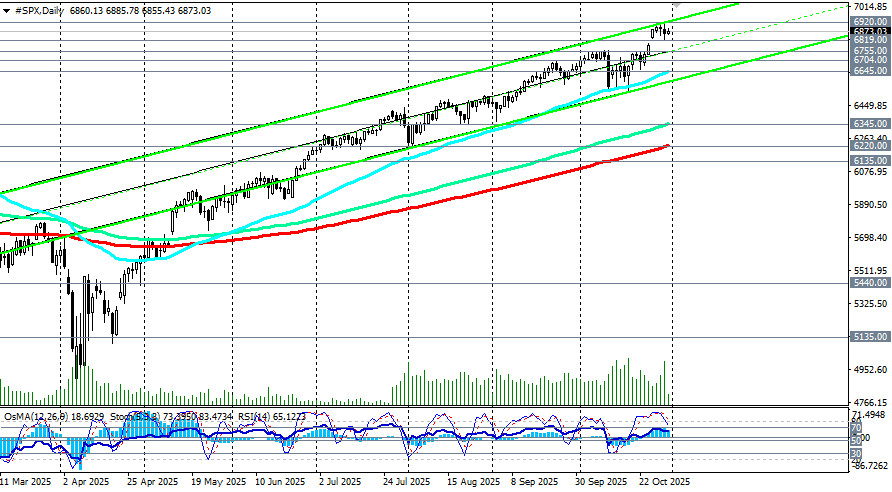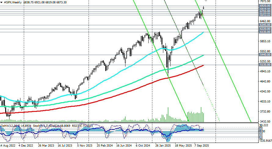 Основные факторы риска включают инфляцию, политические решения и геополитику. Инвесторы же находятся перед лицом непростых решений: продолжающийся рост доходностей угрожает рентабельности акций, а неопределенность вокруг будущих действий ФРС усиливает общую нестабильность рынков, отметили мы в нашем вчерашнем фундаментальном анализе и обзоре «S&P500 (SPX): американские индексы под давлением, доходности и доллар растут». Тем не менее в целом сохраняется устойчивая позитивная динамика индекса S&P500. В основном сценарии ожидаем продолжение роста цены. Предпочтительными, по-прежнему, остаются длинные позиции. Пробой сегодняшнего максимума 6885.00 может стать первым сигналом для наращивания длинных позиций. Далее и после пробоя рекордного максимума, достигнутого на этой неделе вблизи отметки 6920.00, цена может двигаться выше, обновляя исторические максимумы, пока «не нащупает» новые уровни сопротивления. Учитывая же глобальный восходящий тренд S&P500, любое снижение к важным уровням поддержки также может стать лишь поводом для новых длинных позиций и входа в рынок по более выгодным ценам. Такими уровнями поддержки могут стать 6819.00 (вчерашний минимум и ЕМА200 на 1-часовом графике), 6755.00 (локальный уровень поддержки), 6704.00 (ЕМА200 на 4-часовом графике) и даже 6645.00 (ЕМА50 на дневном графике). Для более сильной нисходящей коррекции цена по S&P500 (в торговом терминале отражается как #SPX) должна пробиться в зону ниже «круглого» и локального уровня поддержки 6530.00 (минимумы месяца). Теоретически и с технической точки зрения, возможно и более сильное снижение – к ключевым уровням поддержки 6220.00 (ЕМА200 на дневном графике), 6135.00 (ЕМА50 на недельном графике). Однако для этого необходимы более веские причины, чем «шатдаун» в США, геополитического или монетарного характера. Пока что и в целом сохраняется восходящий тренд, поддерживаемый риторикой Трампа, давящего на ФРС, и ожиданиями дальнейшего смягчения монетарной политики ФРС (см. наш сегодняшний обзор «Доллар: устойчивость вопреки ожиданиям»). Так или иначе, предпочтительны длинные позиции. открыть торговый счет + зарегистрироваться в системе копирования сигналов + инвестировать в ПАММ-системе Материал предоставлен компанией InstaForex - www.instaforex.com