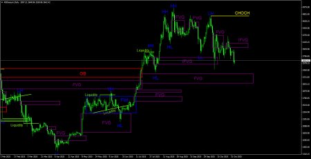 CHOCH – слом трендовой структуры. Liquidity – Ликвидность, Stop Loss трейдеров, которые маркет-мейкеры используют для набора своих позиций. FVG – Область ценовой неэффективности. Цена очень быстро проходит такие области, что указывает на полное отсутствие одной из сторон на рынке. В последствии цена имеет свойство возвращаться и получать реакцию от таких областей. IFVG – Инвертированная область ценовой неэффективности. После возврата к такой области, цена не получает от нее реакцию, а импульсно пробивает, а затем тестирует ее с другой стороны. OB – Ордер-блок. Свеча, на которой маркет-мейкер открывал позицию с целью забора ликвидности для формирования собственной позиции в противоположном направлении. Материал предоставлен компанией InstaForex - www.instaforex.comНовость предоставлена компанией