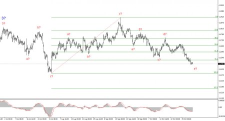 Волновая разметка 4-часового графика для инструмента EUR/USD преобразилась и, к сожалению, не в лучшую сторону. Пока еще рано делать выводы об отмене повышательного участка тренда, но последнее снижение европейской валюты привело к необходимости уточнения волновой разметки. Итак, теперь мы видим серию коррекционных структур. Можно предположить, что они являются составной частью глобальной волны 4 повышательного участка тренда. В этом случае волна 4 приняла неестественно протяженный вид, но в целом волновая разметка сохраняет свою целостность. Построение повышательного участка тренда продолжается, а новостной фон продолжает поддерживать по большей части не доллар. Торговая война, начатая Дональдом Трампом, продолжается. Противостояние президента с ФРС продолжается. «Голубиные» ожидания рынка по ставке ФРС остаются высокими, особенно на 2026 год. В Америке продолжается «шатдаун». Рынок труда «охлаждается». Я считаю, что последнее укрепление доллара – это в некоторой степени парадокс. Но на рынках случаются парадоксы. На мой взгляд, построение повышательного участка тренда не завершено, а его цели разбросаны вплоть до 25-й фигуры. Исходя из этого, европейская валюта может снижаться еще некоторое время, не имея для этого веских оснований(как в последний месяц), но волновая разметка все равно предполагает повышательный участок тренда.