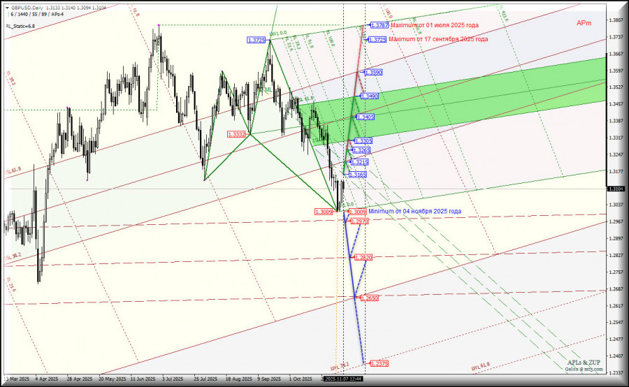 Great Britain Pound vs US Dollar - Daily - будем ли "штурмовать" минимум 1.3009 от 04 ноября? Комплексный анализ APLs &