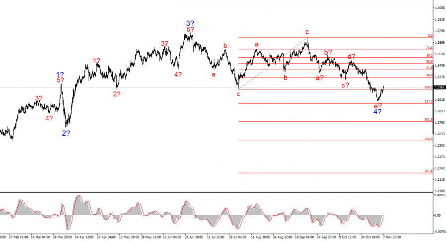 Курс инструмента GBP/USD в течение текущей недели сначала снижался, затем повышался, в точности повторив движения инструмента EUR/USD. Однако, если не рассматривать стандартные отчеты, новостной фон для евро и фунта довольно сильно отличался друг от друга. Во вторник Канцлер Великобритании Рейчел Ривз вызвала бегство участников рынка из британского фунта, заявив, что повышение налогов – неизбежно. Безусловно, никого не может порадовать повышение налогов, а в Британии оно необходимо, чтобы сверстать профицитный бюджет на 2026 год. Проще говоря, расходы британского правительства превышают доходы. Если дефицит бюджета покрывать посредством выпуска государственных облигаций, то нагрузка увеличится еще сильнее, так как любой долг нужно обслуживать. Событие выглядит важным для валютного рынка и для британца, но напомню, что это далеко не первое заявление г-жи Ривз о необходимости повысить налоги. В четверг состоялось заседание Банка Англии. Регулятор принял «пограничное» решение сохранить процентную ставку на отметке 4%, что вполне могло вызвать недовольство почитателей британского фунта. Решение сохранить ставку было принято с минимальным перевесом условных «ястребов» – 5 против 4. Рынок же рассчитывал на гораздо более однозначное мнение от Комитета MPC в пользу сохранения ставки. Напомню, что ключевой проблемой Банка Англии является высокая инфляция – 3,8% в годовом исчислении. Индекс потребительских цен не позволял ожидать снижения ставки, но, как видим, практически половина Комитета MPC не поддержала данное мнение. В сопроводительном заявлении говорилось о том, что уровень безработицы продолжит расти до 5,1%. И, вероятно, именно этим было вызвано желание четырех управляющих провести еще один раунд смягчения денежно-кредитной политики в ноябре. Так или иначе, но после этого «голубиного» события спрос на британца вырос, что тоже не слишком закономерно. Я считаю, что волновая разметка(хоть и нестандартная) гораздо лучше сейчас отвечает на вопрос, чего ожидать дальше.Обратите внимание на другие мои статьи: