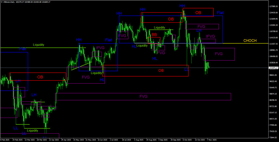 Торговые рекомендации по Биткоину(Bitcoin) на 8 ноября по системе ICT.