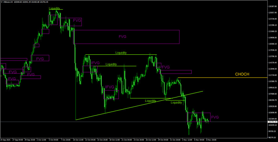 Торговые рекомендации по Биткоину(Bitcoin) на 9 ноября по системе ICT.