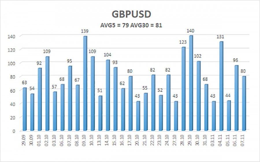 Валютная пара GBP/USD в течение пятницу показала довольно неплохой рост, который позволил ей закрепиться выше скользящей средней линии на 4-часовом ТФ. Напомним(и это отлично видно на иллюстрации выше), что пара далеко не в первый раз преодолевает мувинг, но в предыдущих двух случаях ожидаемый и закономерный рост не начинался. Параллельно с этим индикатор CCI уже каждую неделю рисует «бычью» дивергенцию или же заходит в область перепроданности. Фундаментальных и макроэкономических оснований для падения пары нет и не было. Но практически полтора месяца подряд американская валюта упорно росла, вопреки всему. Даже флэт на дневном ТФ уже выглядит не совсем как флэт, так как цена закрепилась ниже его нижней границы. Так как оснований для роста доллара по-прежнему нет никаких, мы продолжаем относится к текущему падению, как к коррекции. Коррекция будет рано или поздно завершена, поэтому ключевым моментом сейчас остается поиск подходящего времени для открытия новых длинных позиций. Напомним, что европейская валюта на дневном ТФ остается внутри бокового канала. Если она начнет восхождение хотя бы в рамках этого канала, то, скорее всего, начнет расти и фунт. В последние недели рынок использовал любую возможность продать британскую валюту и практически все события, происходящие в Британии и США, трактовал в пользу доллара. Так мы, например, узнали, что «шатдаун» – это вообще не проблема для американской экономики, ФРС настроена «недостаточного по-голубиному», а Банк Англии в любом случае продолжит смягчение монетарной политики. Напомним, что в реальности дела обстоят как раз наоборот. «Шатдаун» приведет к сокращению темпов роста ВВП, что в совокупности с падающим рынком труда может привести даже к рецессии в американской экономике. ФРС в любом случае будет продолжать смягчение монетарной политики. На первых порах из-за слабости рынка труда, в 2026 году – из-за того, что состав Монетарного комитета станет еще более подвластным Трампу. Банк Англии же почти принял решение понизить ключевую ставку, а также сообщил, что инфляция будет снижаться в ближайшие годы. Однако, будет ли снижаться инфляция – это пока вопрос открытый. Если будет, возможны новые снижения ключевой ставки. А если нет? Таким образом, мы считаем, что американская валюта в последние полтора месяца выросла абсолютно необоснованно и слишком сильно. Даже если падение продолжится каким-то чудом, мы все равно будет рассматривать только восходящий тренд и искать возможности для покупок. В ближайшее время пара GBP/USD может подняться к уровню 1,3260, на котором пролегает критическая линия Киджун-сен на дневном графике. Однако в идеале увидеть рост хотя бы до 1,3430, где пролегает линия Сенкоу Спан Б. Средняя волатильность пары GBP/USD за последние 5 торговых дней составляет 79 пунктов. Для пары фунт/доллар это значение является «средним». В понедельник, 10 ноября, таким образом, мы ожидаем движения внутри диапазона, ограниченного уровнями 1,3082 и 1,3240. Старший канал линейной регрессии направлен вниз, но из-за технической коррекции на старших ТФ. Индикатор CCI четырежды заходил в область перепроданности, что предупреждает о возобновлении восходящего тренда. Сформировалась новая, очередная «бычья» дивергенция, от которой и начался последний виток роста. Ближайшие уровни поддержки: S1 – 1,3062 S2 – 1,2939 S3 