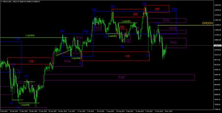 Торговые рекомендации по Биткоину(Bitcoin) на 8 ноября по системе ICT.