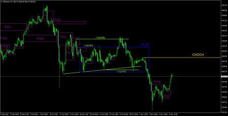 CHOCH – слом трендовой структуры. Liquidity – Ликвидность, Stop Loss трейдеров, которые маркет-мейкеры используют для набора своих позиций. FVG – Область ценовой неэффективности. Цена очень быстро проходит такие области, что указывает на полное отсутствие одной из сторон на рынке. В последствии цена имеет свойство возвращаться и получать реакцию от таких областей. IFVG – Инвертированная область ценовой неэффективности. После возврата к такой области, цена не получает от нее реакцию, а импульсно пробивает, а затем тестирует ее с другой стороны. OB – Ордер-блок. Свеча, на которой маркет-мейкер открывал позицию с целью забора ликвидности для формирования собственной позиции в противоположном направлении. Материал предоставлен компанией InstaForex - www.instaforex.comНовость предоставлена компанией